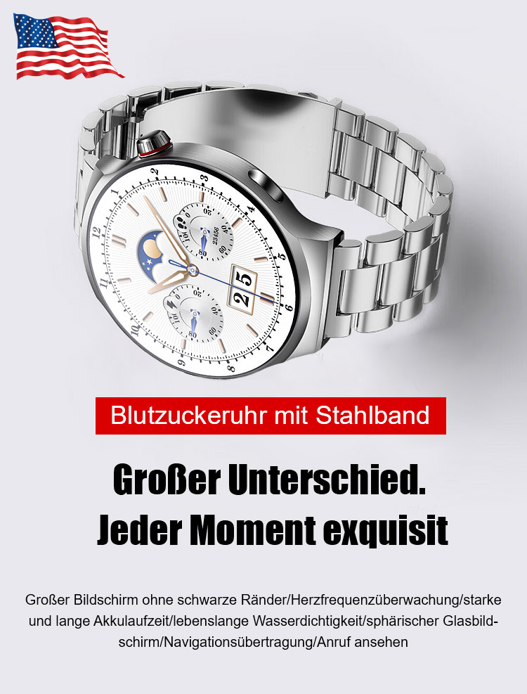 Blutzuckeruhr mit Stahlband. Lagerbestand läuft zur Neige – Zeitlich begrenzte Sonderaktion